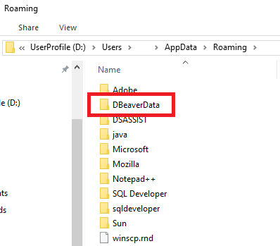 그럼 DBeaver가 설치된 PC라면 아래와 같이 DBeaverData 디렉토리를 확인할 수 있다. 통째로 복사하자.